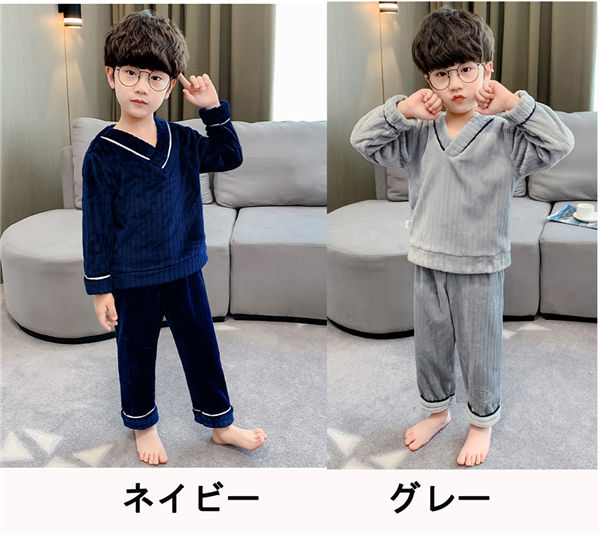 ルームウェア キッズパジャマ 子供パジャマ もこもこ 上下セット 男の子 ナイトウェア モコモコ 寝巻き 冬 かわいい おしゃれ 長袖 オシャレ 子ども ふわふわ 裏起毛 可愛い 韓国 部屋着 誕生日 プレゼント 暖かい ロングパンツ あったか グレー ネイビー dh346d3