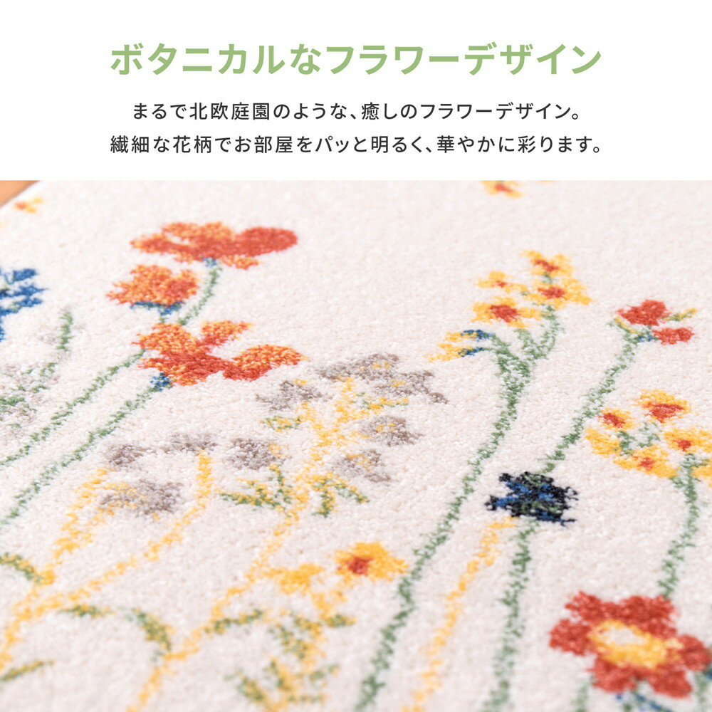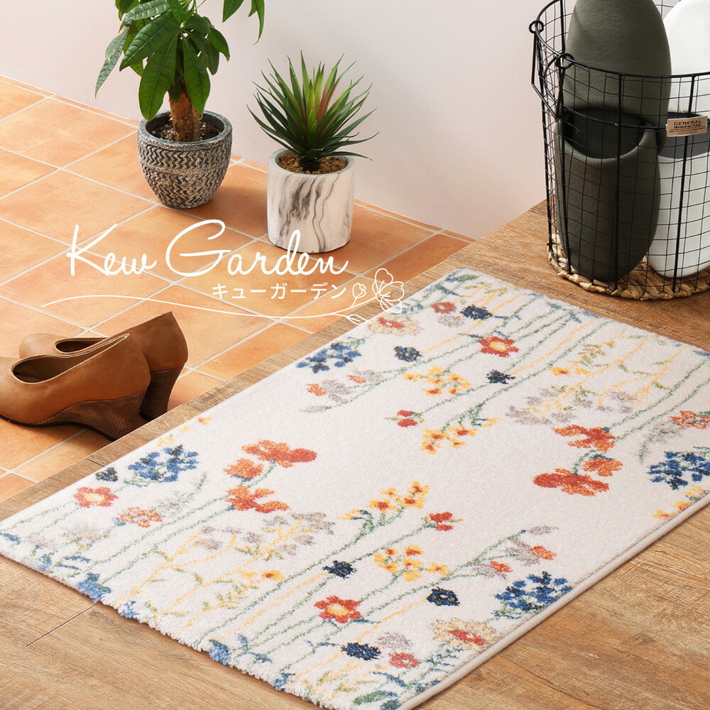 ウィルトンマット キューガーデン 約60×90cm 長方形 おしゃれ モダン 花柄 ウィルトン織り アクセント オールシーズン ラグ カーペット かわいい シンプル 敷き物 敷物 玄関マット キッチンマット ホットカーペット 床暖房OK